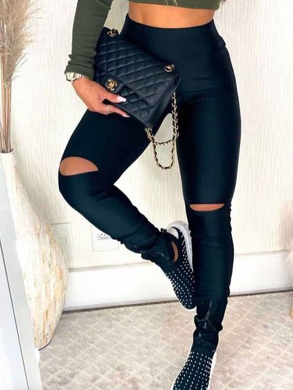A calça mais queridinha do momento e super versátil de usar. Nossa calça é feita em suplex, tecido confortável, que se adapta e modelo o corpo, sem marcar e sem ficar transparente. A cintura é alta, com aproximadamente 11 cm, colocando a barriguinha no lugar, como nós mulheres tanto gostamos. Calças nesse estilo super se adaptam ao nosso dia a dia, porque são confortáveis e combinam com tudo. Fica bem com tênis, com salto, botas e coturnos, para você ficar linda na academia, no trabalho e em todos os seus passeios. O suplex é composto por poliéster e elastano, fornecendo resistência e flexibilidade, não desbota, não pega pelos ou bolinhas e é super fácil de lavar. Sabe aquele recorte no joelho que está super em alta, fizemos ele todo costurado, para ter resistência e dar aquele ar de novidade ao seu visual. Fizemos somente na cor preta. Não há zíper. O tamanho M veste do 36 ao 40. O tamanho G veste do 42 ao 44. O tamanho GG veste do 44 ao 46. Vem ser LIVRE, vem ser VOCÊ!