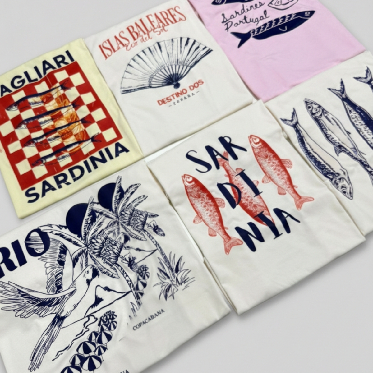 As estampas são na parte da frente da camiseta.