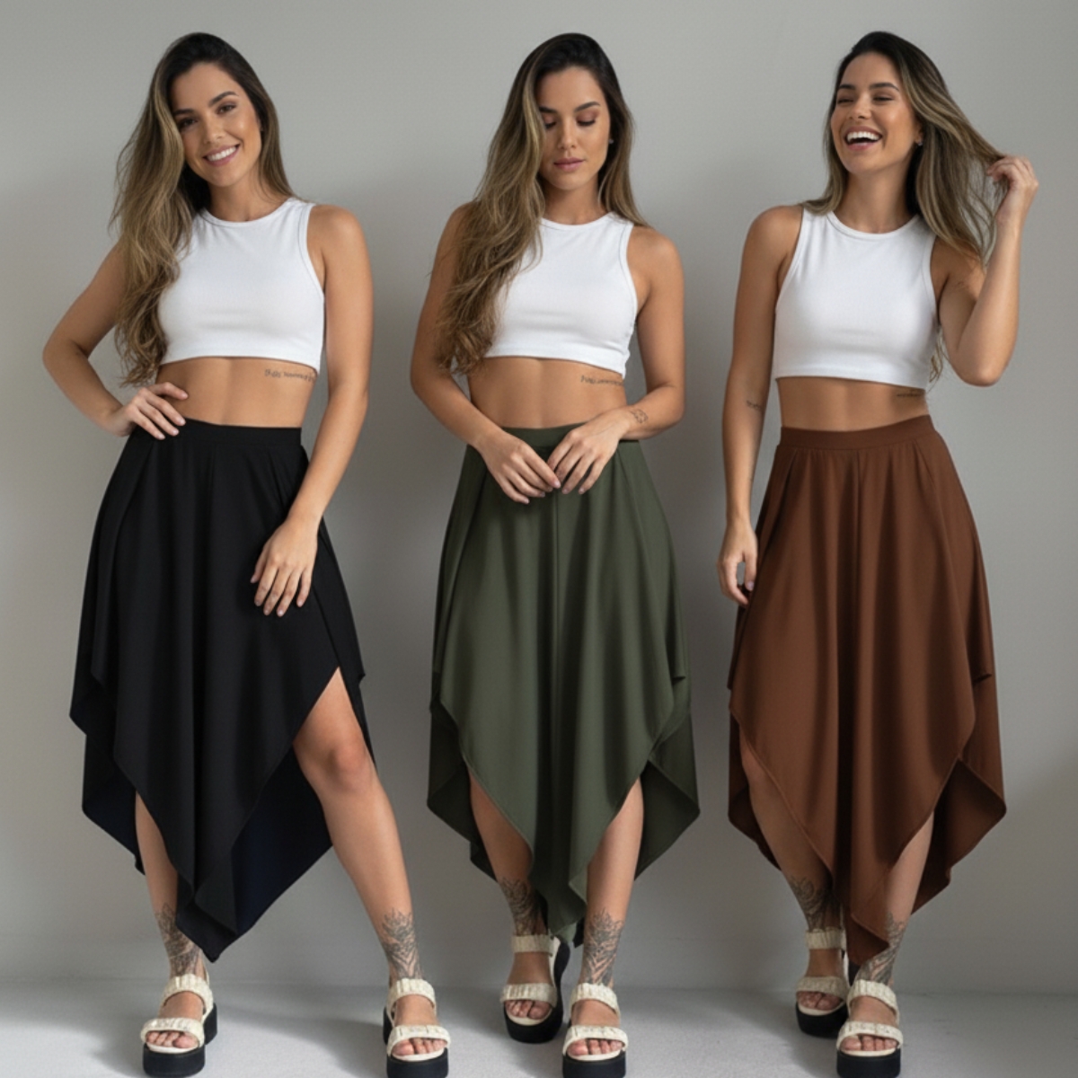 Versatilidade: Essa peça é ideal para quem busca liberdade e estilo. É muito versátil, combinando perfeitamente com tênis, sandálias, rasteirinhas ou saltos, permitindo criar looks casuais ou mais elaborados. Sinta-se LIVRE para usá-la como quiser.